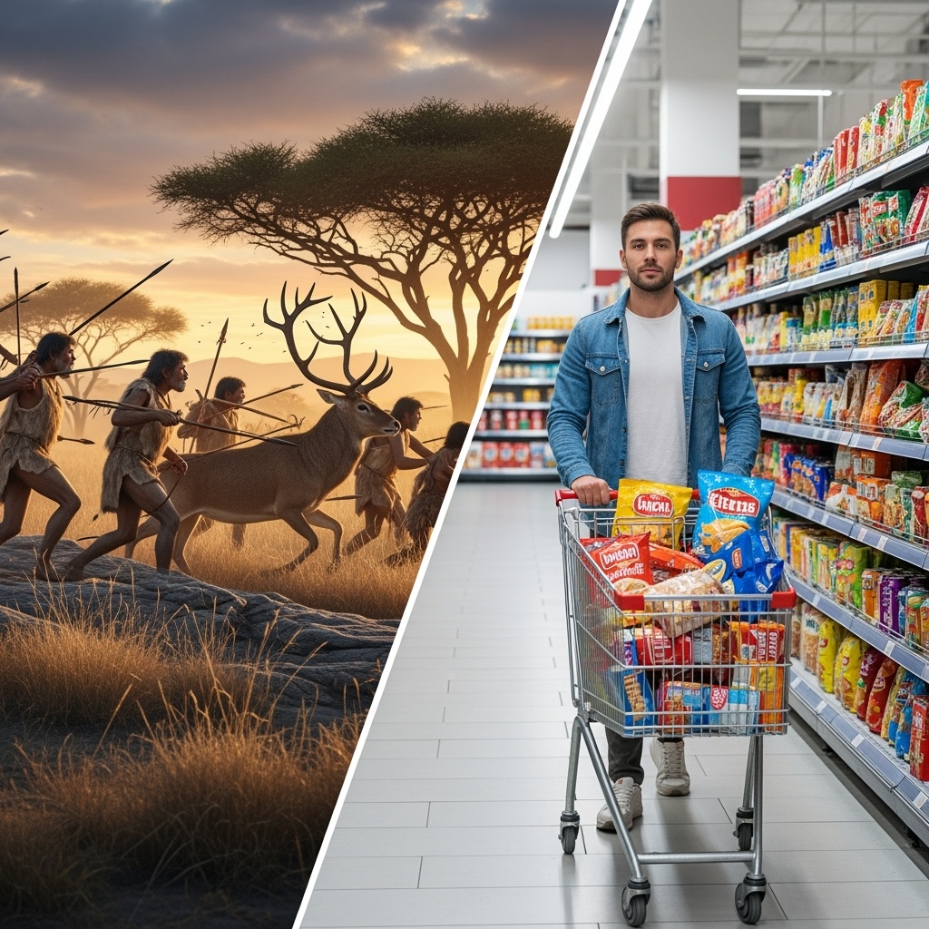 So, what do I mean? The more calorie-dense the food, the more of that happy hormone is released. And if our body is still programmed from our ancestors to seek out calorie dense foods, and we choose the wrong form… we are going to make ourselves sick. Like eating a moist chewy, oily, sugar laden candy bar vs a natural fresh piece of fruit and nuts. I’m not talking about a once in a while thing, we tend to do this too much! A lot of us no longer eat whole real foods like bananas, potatoes, beans, and veggies… instead, we are stimulated and made to feel like it is normal to eat something out of a package that may be ultra-processed. Or rely on fast foods that are thick with calories but lack nutrients to sustain us. We are feeding our bodies with unhealthy fats, preservatives, chemicals, pesticides, vegetable oils, high salt and high sugar intake. And let me tell you, a lot of food companies making ultra-processed food items are engineering them to hijack your tastebuds to want more of these high sugar, high salt, etc. Remember, higher calories and ingredients will stimulate that dopamine reaction to release and increase that “feel good” moment to come back for more! We did not evolve to eat ultra-processed unnatural foods. When we do, overtime our bodies start to malfunction after a while, right? Know anyone with digestive issues, stubborn adipose tissue, high cholesterol, diabetes, high blood pressure, skin issues, sleep issues, ongoing headaches, cancer, hormone imbalances, major mood swings, etc.? We are actually supposed to feel generally good, so if one feels bad/sick all the time, something we are fueling ourselves with is off.